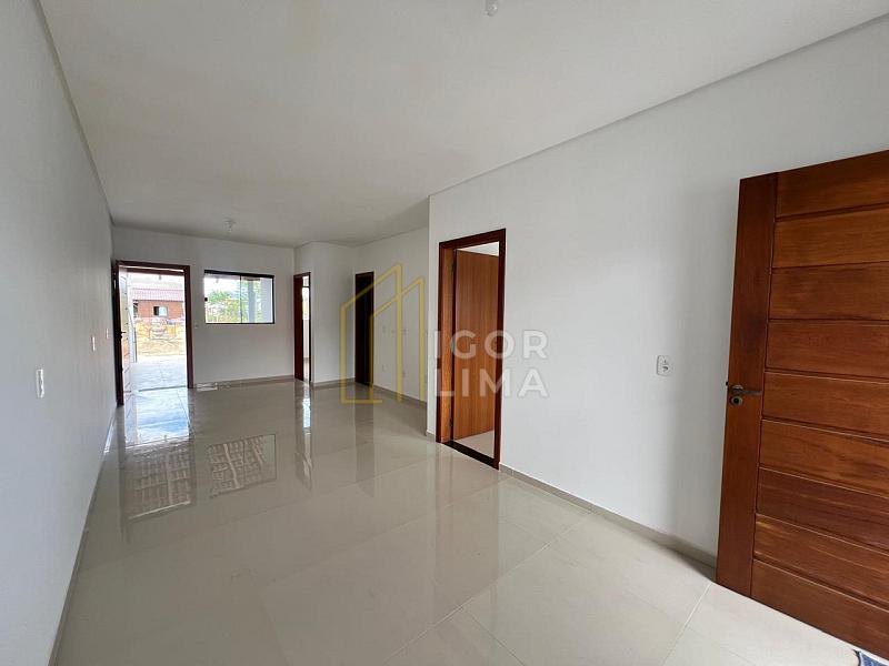 A casa conta com 2 quartos, sendo um suíte, área social integrada, banheiro social, área de serviço e todos os cômodos possuem rebaixo em gesso e piso porcelanato.