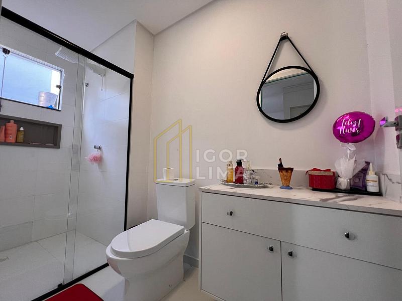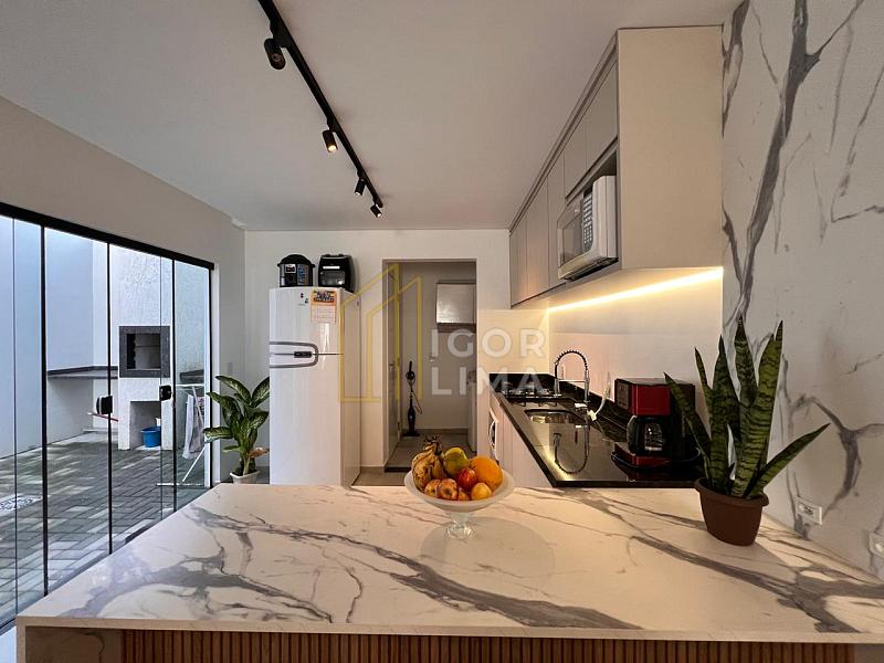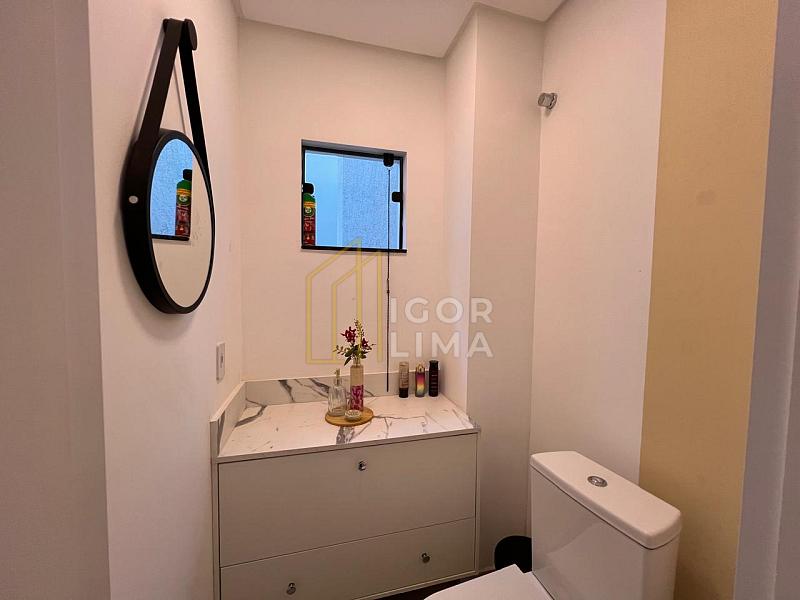 Conta com 03 quartos (01 suíte), banheiro social, sala de estar e jantar, cozinha, área de serviço, lavabo e área gourmet com churrasqueira a carvão. Possui também passagem lateral.